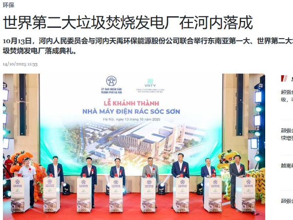 越通社:世界第二大垃圾焚烧发电厂在河内落成