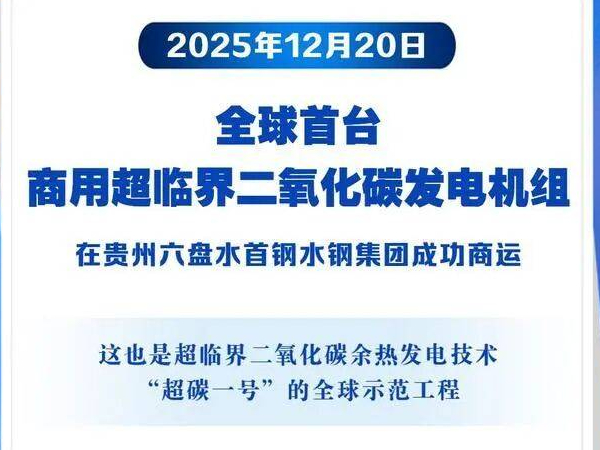 全球首台商用超临界二氧化碳发电机组在贵州六盘水成功商运,这也是超临界二氧化碳余热发电技术“超碳一号”的全球示范工程,成为发电技术的进步例证。