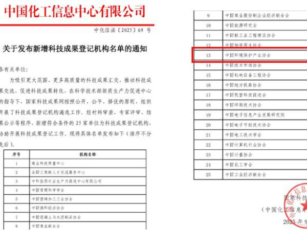 中国环境保护产业协会成为国家科技成果登记机构!
