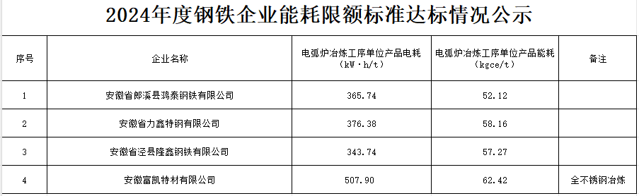 2024年度钢铁企业能耗限额标准达标情况公示