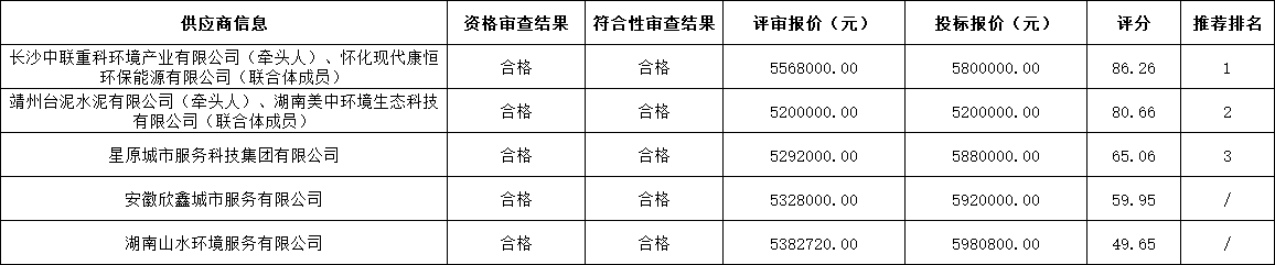 通道侗族自治县城市管理和综合执法局的通道县生活垃圾外运和焚烧处理服务项目公开招标项目于2025年10月27日结束,现将中标结果公告如下: