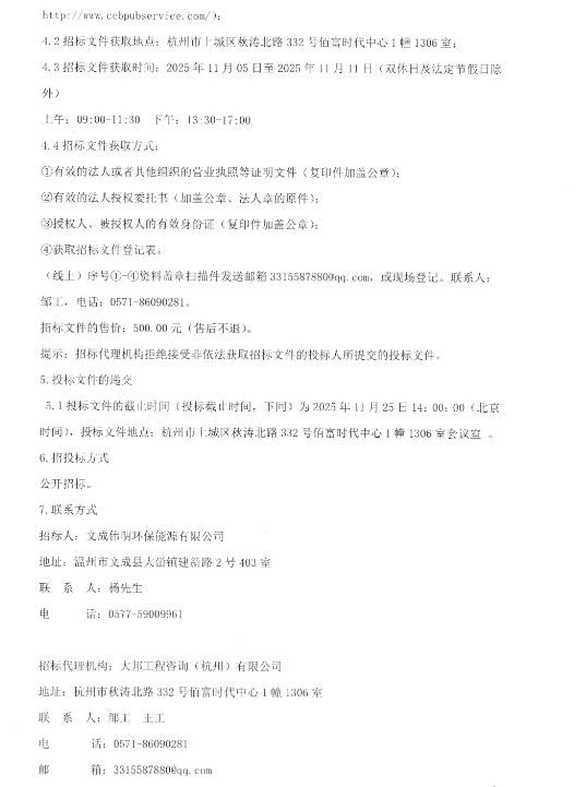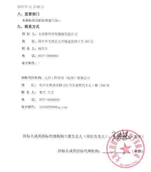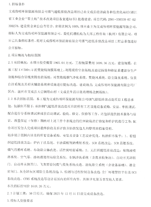 11月5日,文成伟明环保能源有限公司烟气超低排放改造项目工程总承包招标公告发布。