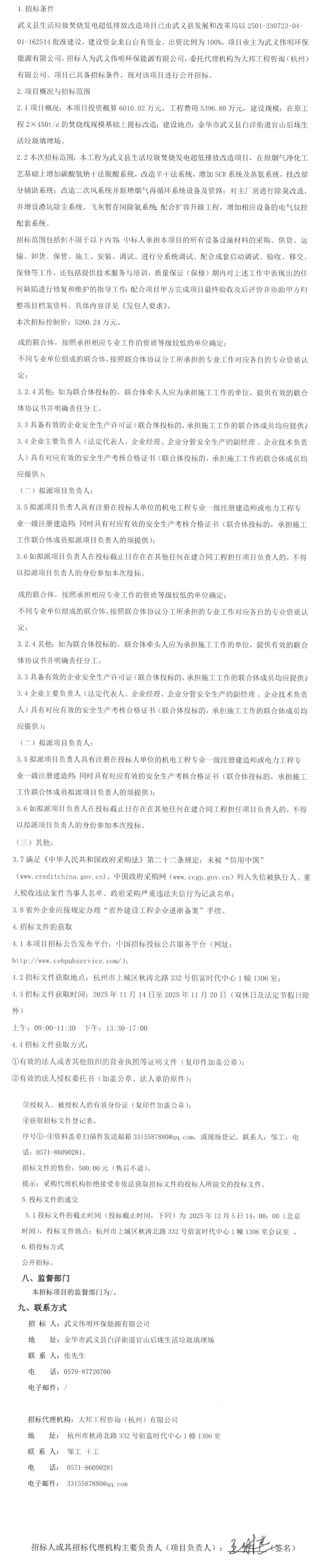 11月14日,浙江武义县生活垃圾焚烧发电超低排放改造项目招标公告发布。
