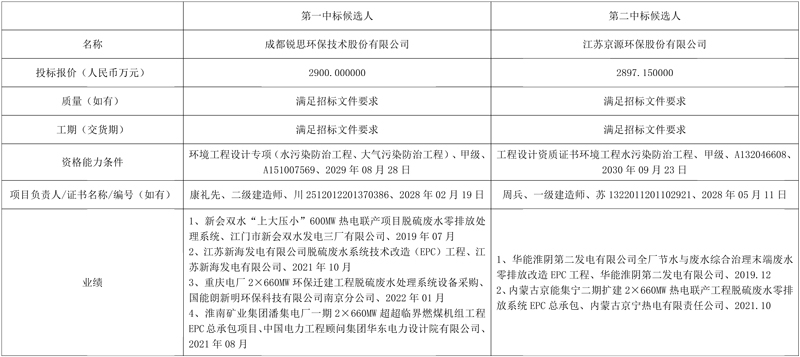 2026年1月5日,国能山东公司菏泽公司脱硫废水零排放改造项目EPC工程公开招标中标候选人公示。