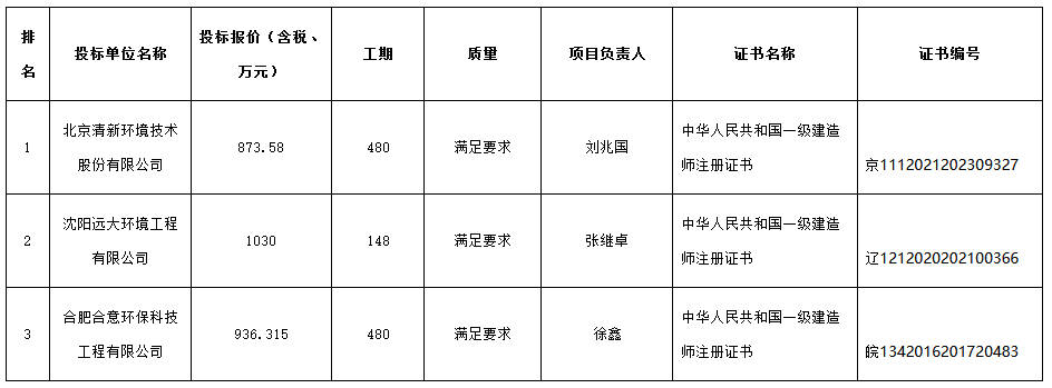 中标候选人如下: