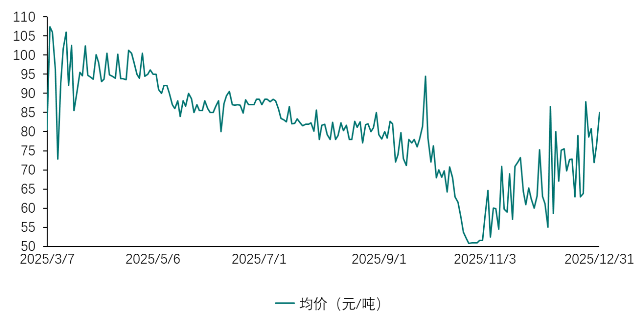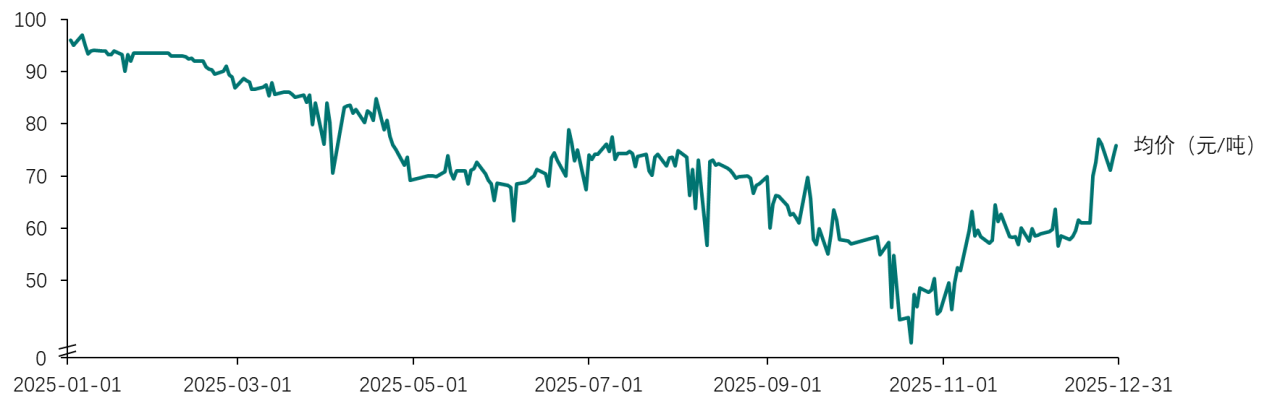 未按期结转的碳排放配额,将不得用于2025年及以后年度的履约工作。因此,为实现配额结转量的最大化,拥有盈余配额的重点排放单位会提前抛售,以锁定未来结转额度,导致市场上短期配额供给增加,推动碳价下跌。其次,随着配额核定与发放落实,市场可交易配额增加,亦推动碳价下跌。此后,进入11月至12月,随着清缴期限临近,重点排放单位履约需求上升,价格逐步回升,12月31日回升至75.86元/吨,较10月21日低点上升37.75元/吨,涨幅99.06%。