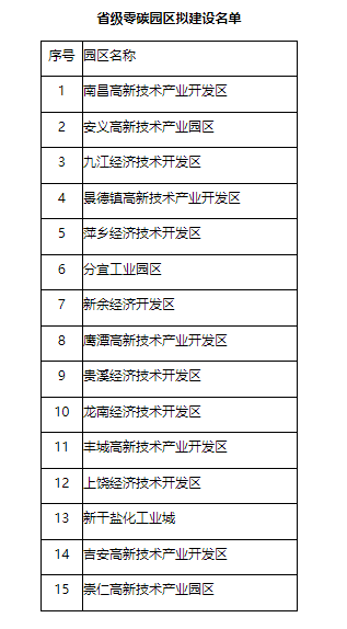 贯彻落实党中央、国务院决策部署和省委、省政府工作要求,支持有条件的地区开展零碳园区建设,推动园区和企业加快低碳化零碳化进程,我委会同省财政厅、省工业和信息化厅、省能源局、国网江西省电力有限公司组织开展省级零碳园区遴选工作。经园区申报、地方推荐、专家与部门联审等程序,确定了省级零碳园区拟建设名单(见附件),共纳入15个园区,现予以公示。