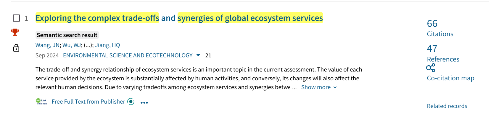 Wang Jinnan, Wu Wenjun*, Yang Meng, Gao Yueming, Shao Jiacheng, Yang Weishan, Ma Guoxia, Yu Fang, Yao Nan, Jiang Hongqiang**. (2024). Exploring the complex trade-offs and synergies of global ecosystem services. Environmental Science & Ecotechnology. 21, 100391.