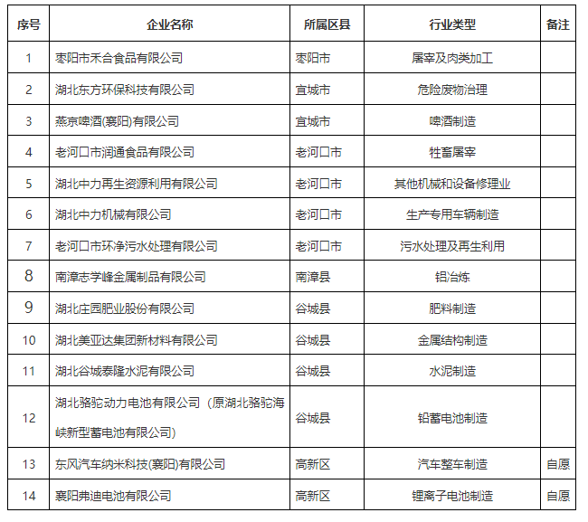 襄阳市2026年度开展清洁生产审核重点企业名单公示